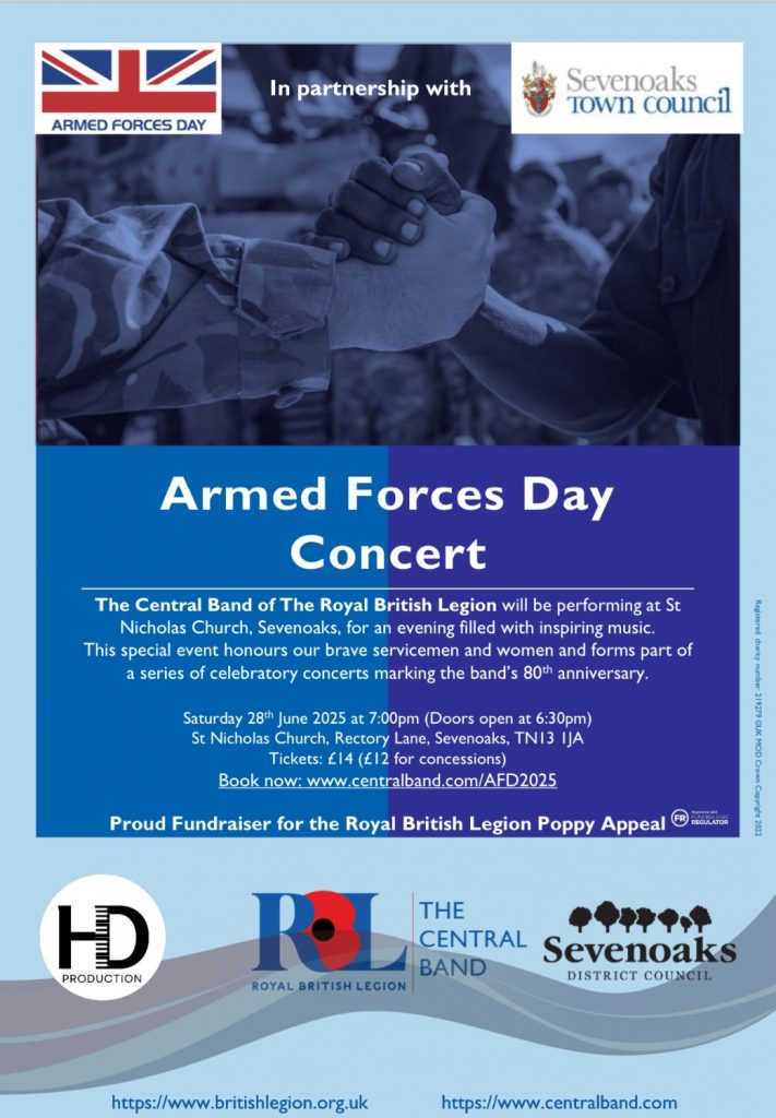 Presented by HD Production and the Central Band of the Royal British Legion, with support from Sevenoaks Town Council, the evening promises a moving and memorable tribute to the service and sacrifice of the UK’s Armed Forces.